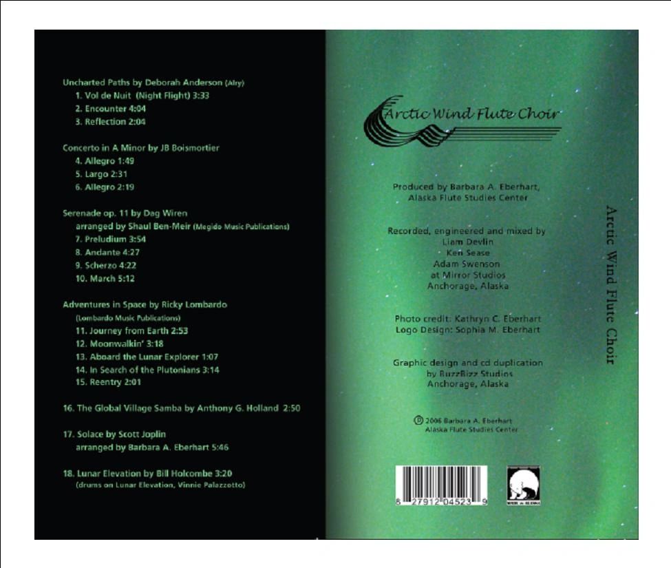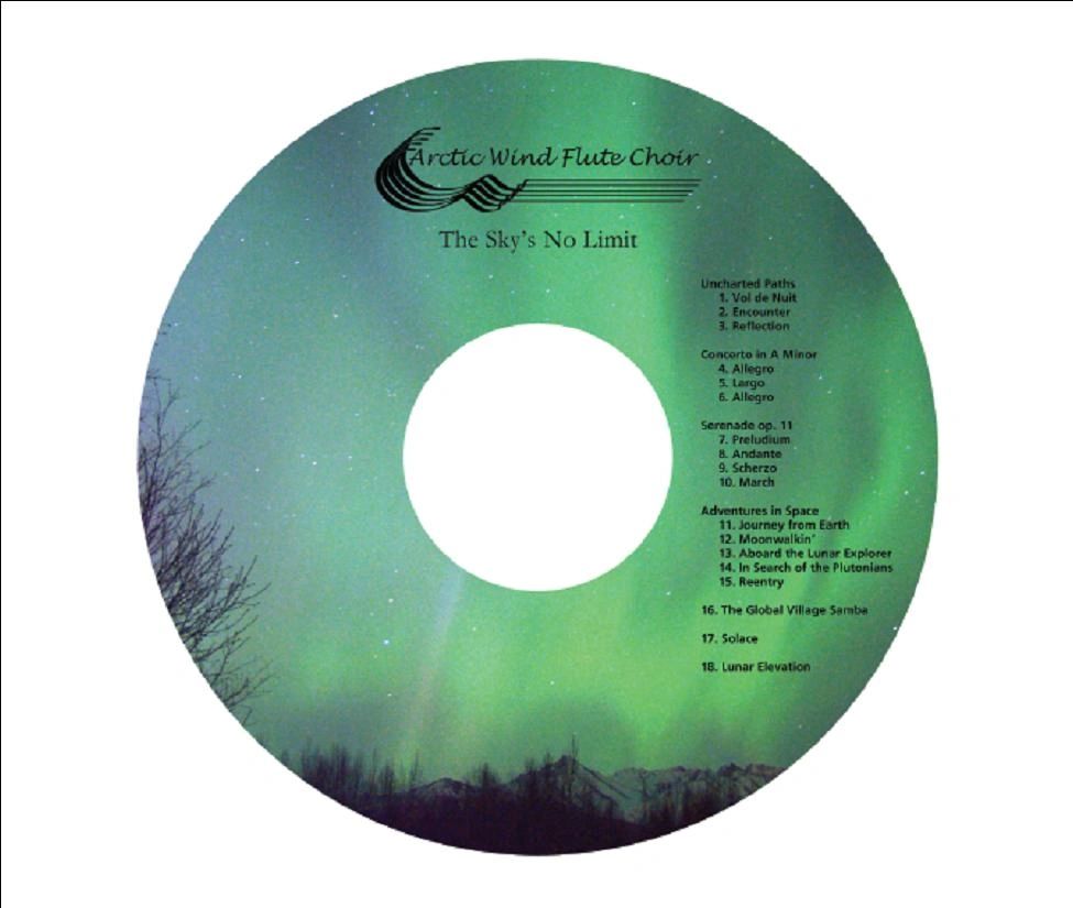 Recorded in 2005 and released in 2006, this CD is the work of the high school students at the Alaska Flute Studies Center in Anchorage, Alaska. The Sky’s No Limit is the perfect concept from Alaska where we often have the aurora borealis dancing across the night sky.