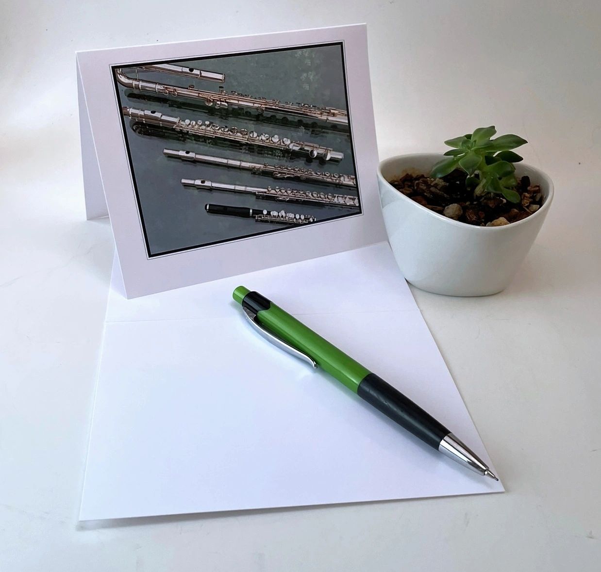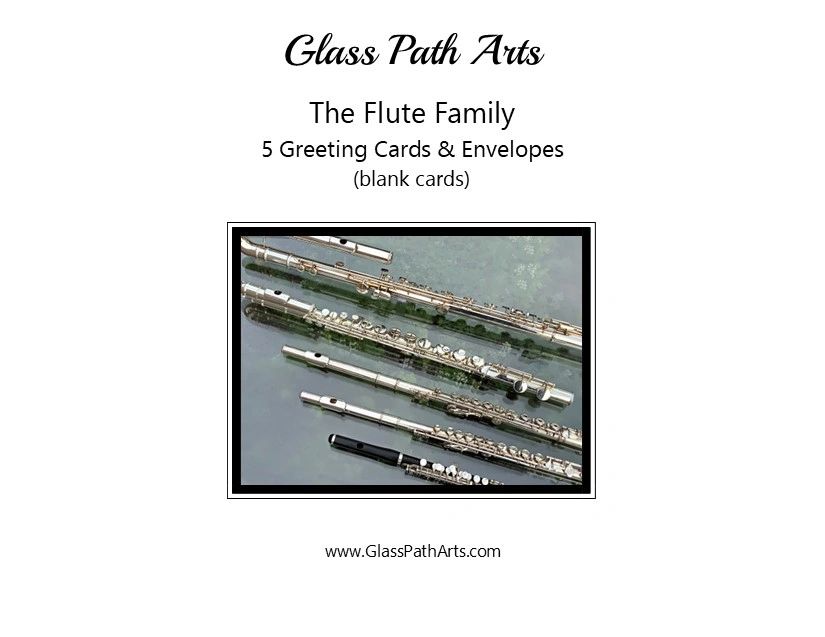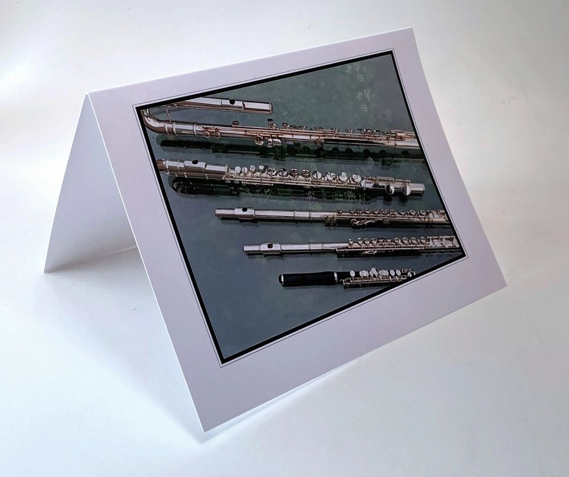 The Flute Family Greeting Cards feature a beautifully designed image of the flute family from piccolo to bass flute.
