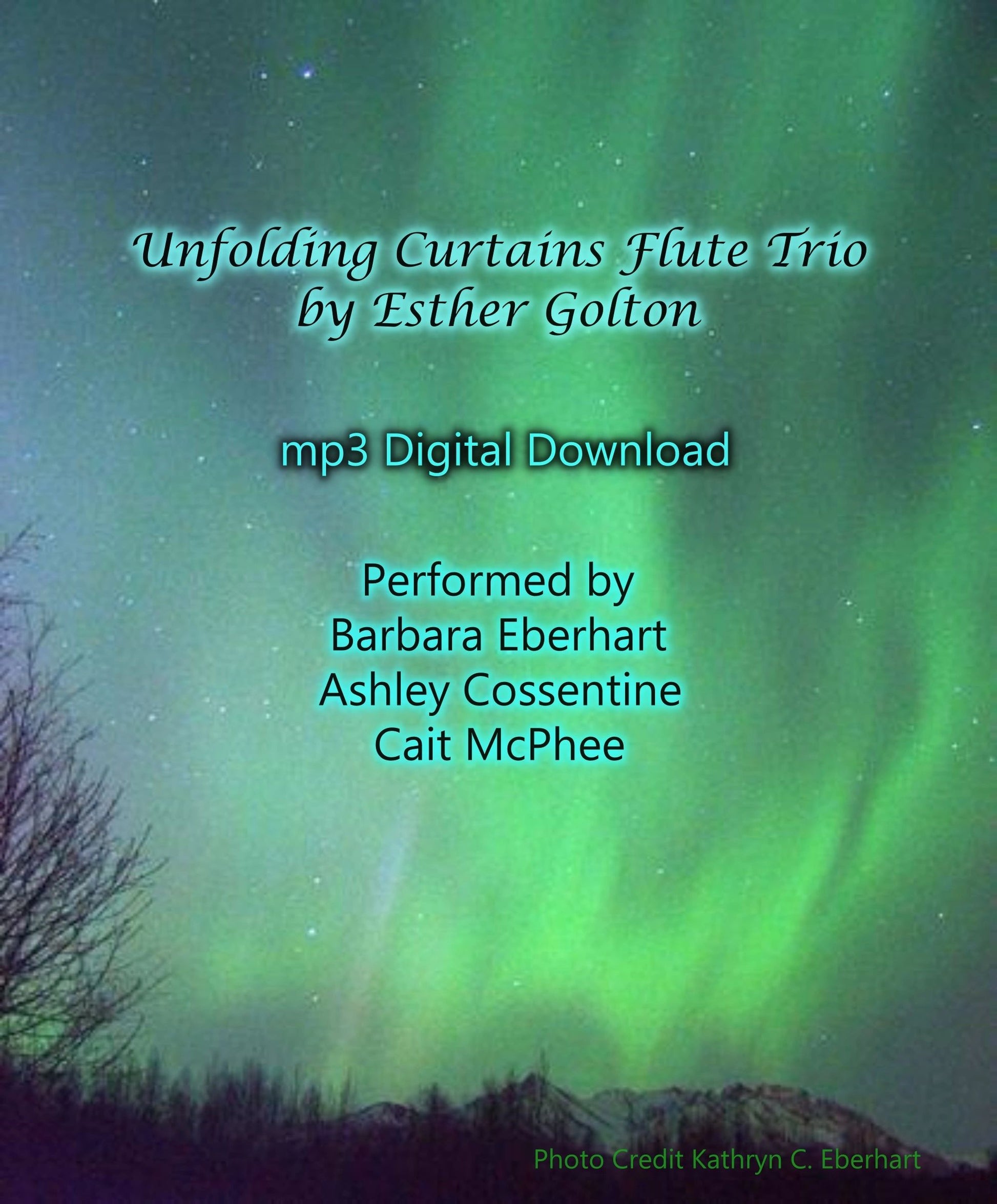 This extraordinary work for flute trio was written in Talkeetna, Alaska. The composer, Esther Golton, was inspired to use flutes to describe the northern lights rippling across the night sky. Unfolding Curtains 4:42
