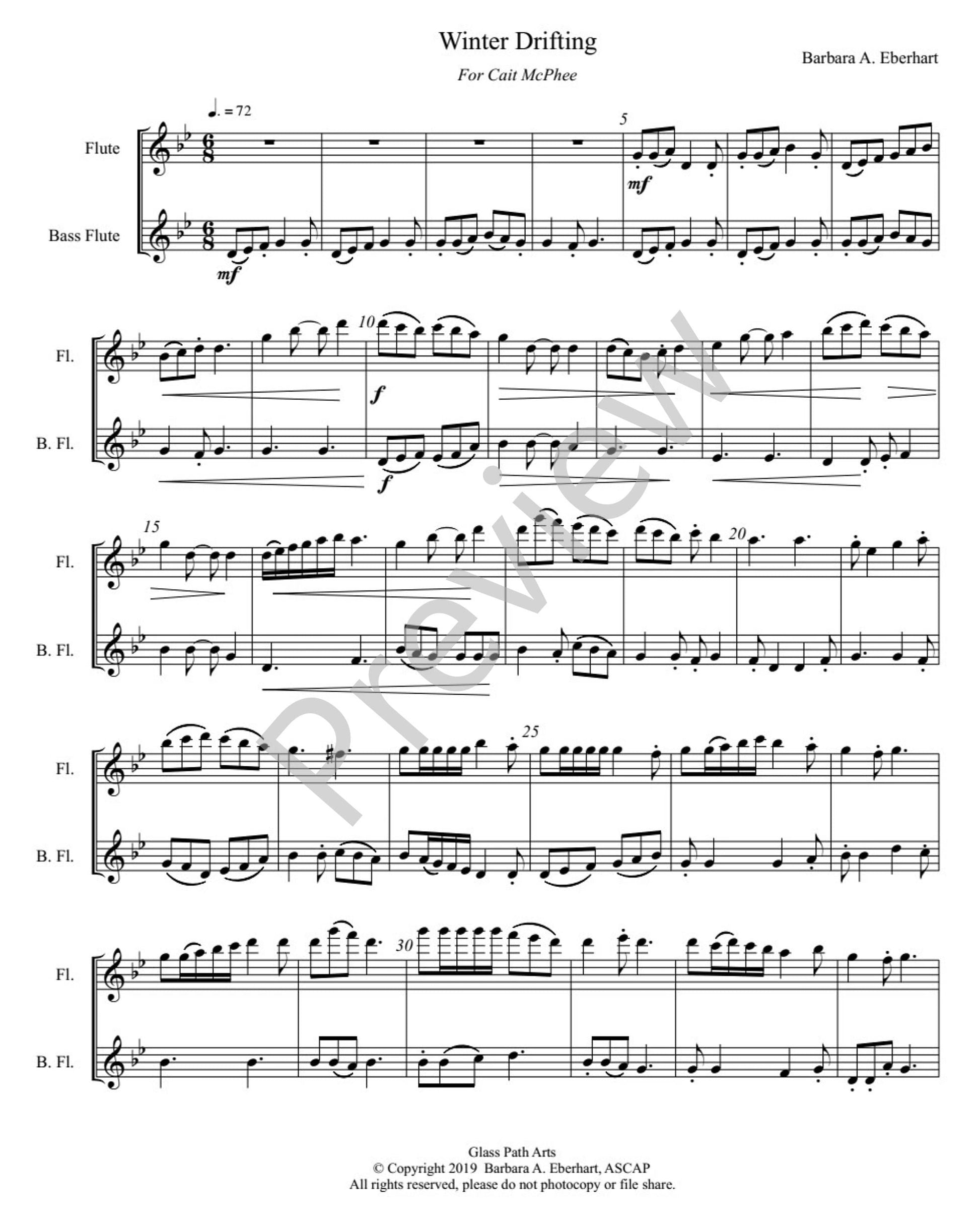 Winter Drifting Flute Duet - Sheet Music Digital Download